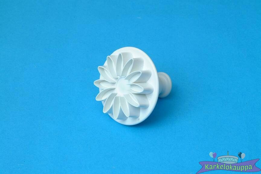 Popis produktuNew! Now available in a smaller size! Plunger cutter with veins, for a beautiful sunflower, daisy or gerbera. Easy to use and life like results. Diameter is approximately 44 mm with 12 petals (not visible in the photo). English instructions included. Also available in 70 and 105 mm.