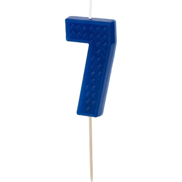 Birthday candle Number 7 with brick pattern in blue colour, size approx. 6 cm.