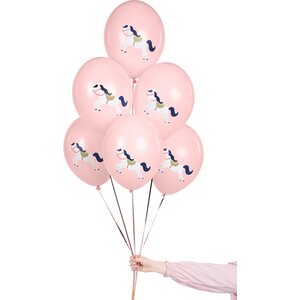 ProduktbeskrivelseStrong balloons Little horse with print, set contains 6 balloons (6 in pastel Pale Pink colour with colorful print), diameter approx. 30 cm.