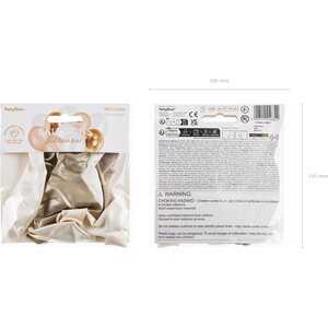 TermékleírásLatex balloons set, mix of colours (pastel alabaster - 3 pcs, metallic white - 3 pcs, pastel white - 2 pcs and glossy gold - 2 pcs), set contains balloons in size 27 cm and 30 cm.