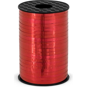 Descrizione del prodottoMetallic plastic ribbon, red, width approx. 5 mm, length approx. 225 m.